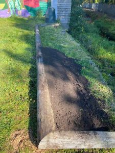 The soil was laid up to the telegraph poles and quick as a flash Martin had the first bed planted! |