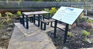 Meanwhile, Alan fixed in place the information panel for the community garden at the Canal Centre. |