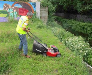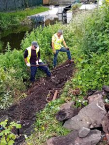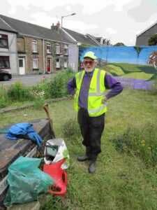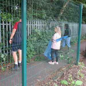 Our new chums from Hendrefelin School first picked up litter and then trimmed growth protruding through the fence. |