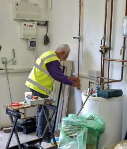Alan, James and Pete installed 15m of safety railings along the back of the boat basin. Gordon cut all the tubes and the job was finished before lunchtime. |