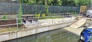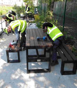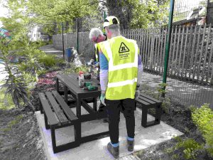 Alan and James secured the new tables and benches on the concrete slabs at the rear of the Centre. |