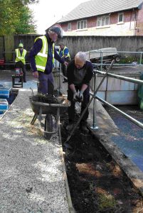 Logistical issues meant that we had to work today at the Canal Centre rather than the Buried Lock as originally planned. Nothing daunted, we quickly reorganised and set to on a day that was rather chilly and windy but dry. The gardeners tended to the flower beds and Chris M mowed around the stone barge. |