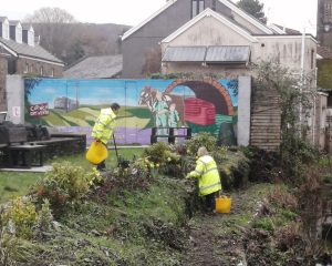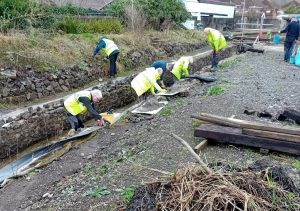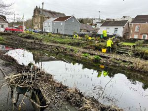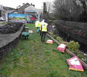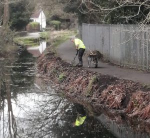 Gary paused in the back-breaking work of heaving weed to take a view of the gardeners across the cut. |