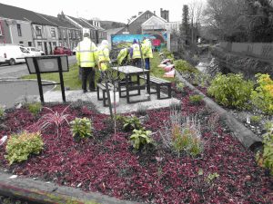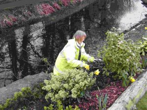Meanwhile at the Canal Centre, the flowerbeds were mulched with generously donated bark and then the beds were weeded. |