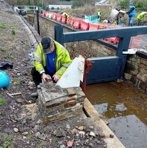 Gordon completed the stonework around one of the paddle mechanisms. |