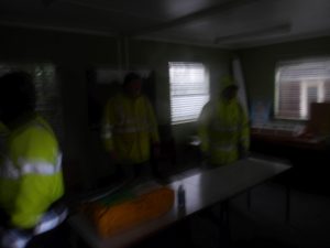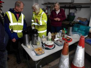 Tea break gave a welcome relief from the weather. Jan was today’s baker – her Christmas cake was a work of art as well as delicious. |